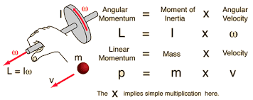 Just as linear momentum equals mass times velocity (p = mv), angular momentum equals moment of inertia times angular velocity.