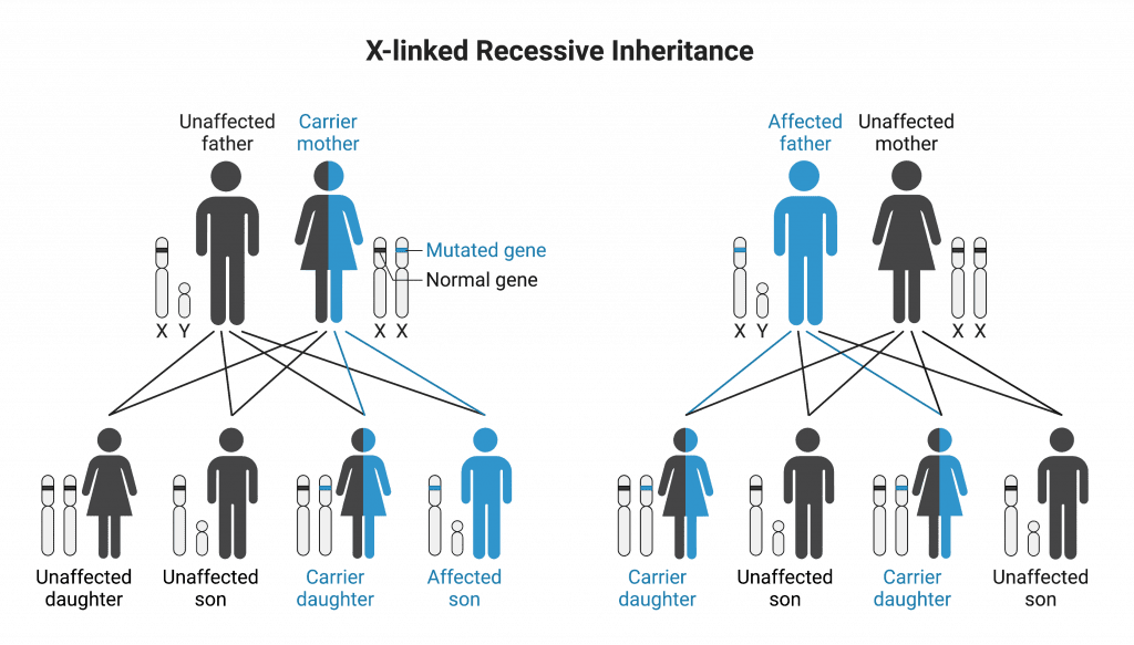I always tell my students to think of X-linked inheritance like this: imagine men are wearing only one glove (X chromosome) while women wear two. If there’s a hole in that one glove, men’s hands get cold (express the trait), but women have a backup glove that might not have a hole.