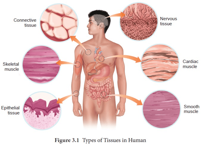 Muscle Tissue: Specialized for contraction and movement. Three types exist: