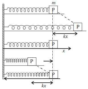 [EQUATION: F = -kx, where F is the restoring force, k is the spring constant, and x is displacement from equilibrium]