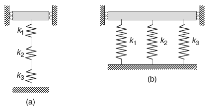 When springs are connected side-by-side, they share the same displacement but provide additive forces. The effective spring constant for springs in parallel is: